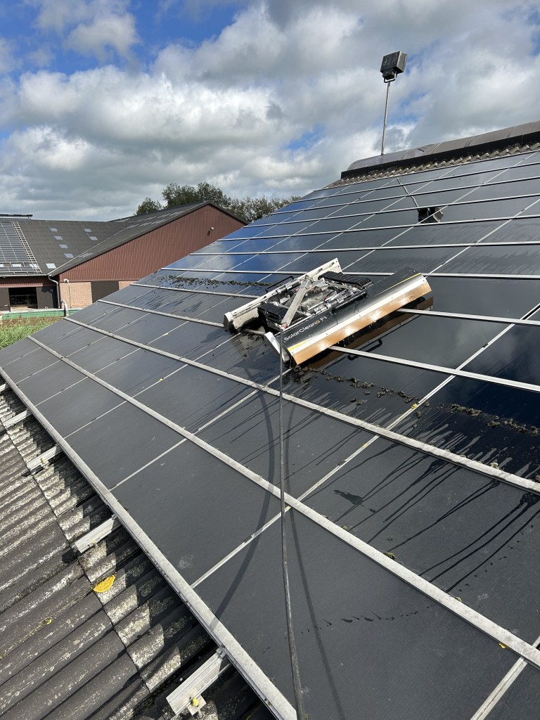 Voor de grotere projecten voeren we de schoonmaak uit met de Solar Cleano F1 robot- een afstand bestuurbaar robot die speciaal is ontworpen voor het reinigen van zonnepanelen. De Solar Cleano robot reinigt de zonnepanelen snel en effectief waardoor de energieopbrengst van de panelen gemaximeerd wordt.